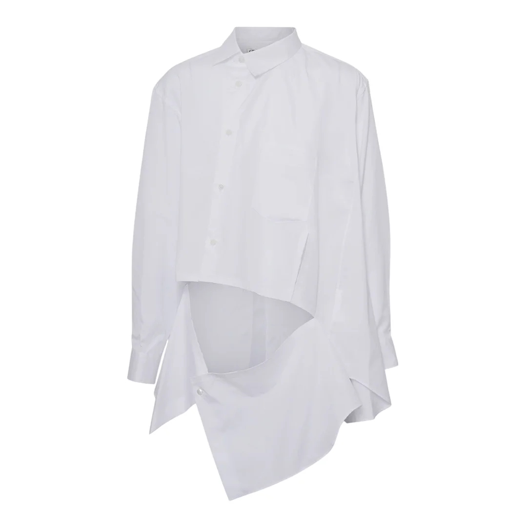 300049289WHT-XS / A5GP-B012-051/00/WHITE - Asymmetrical wrap construction - Classic point collar - Long sleeves with button cuffs - Front button closure - Deconstructed hem design - Premium cotton broadcloth - Relaxed fit COMME des GARCONS Cotton Broad Shirt delivers avant-garde tailoring with deconstructed asymmetrical design. Crafted from premium cotton broadcloth in crisp white, featuring an innovative wrap construction that transforms the traditional shirt silhouette. The architectural draping and signature CDG aesthetic create a bold statement piece that redefines contemporary shirting.