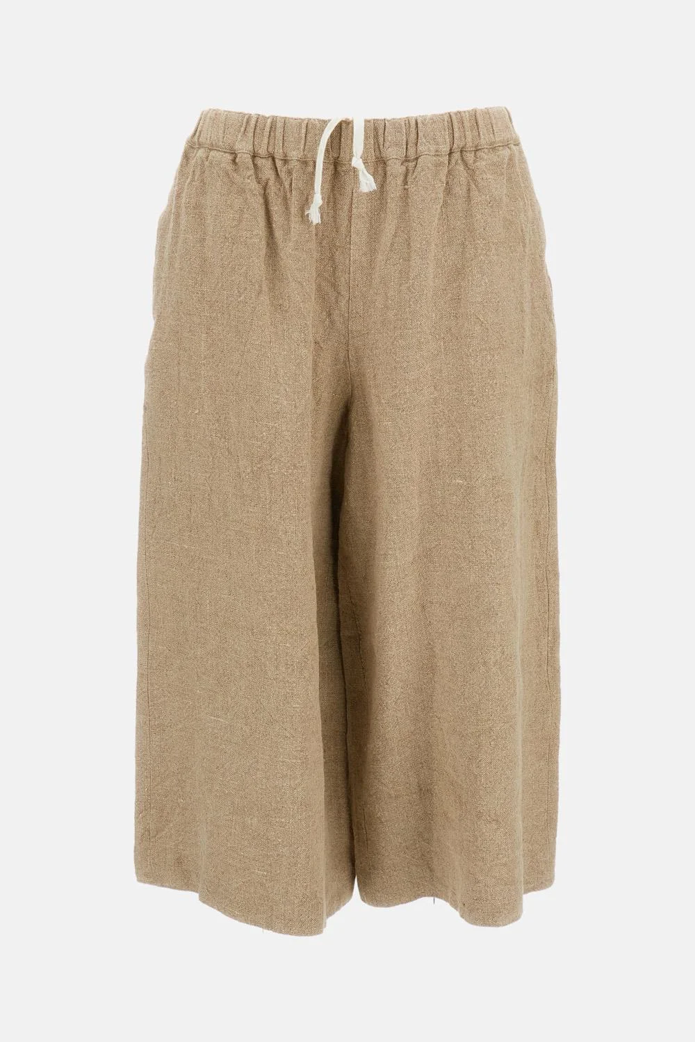 Wide-leg linen trousers Cropped ankle-length cut Elasticated waist with drawstring Side welt pockets Color: beige Details and Care Color: Beige Composition: 100% LI Made in: Giappone Sku: GQP0040511