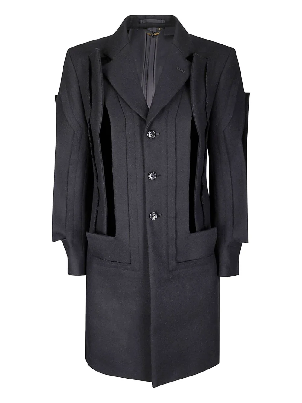 cut-out detail coat Highlights - Black - Cut-out detail - Button fastening - Front pockets - Long sleeves - Wool blend Imported Composition Wool 90%, Nylon 10% Washing instructions Read Manufacturer Guidelines