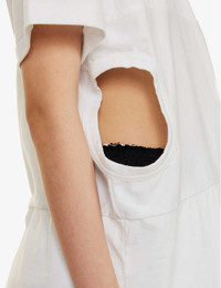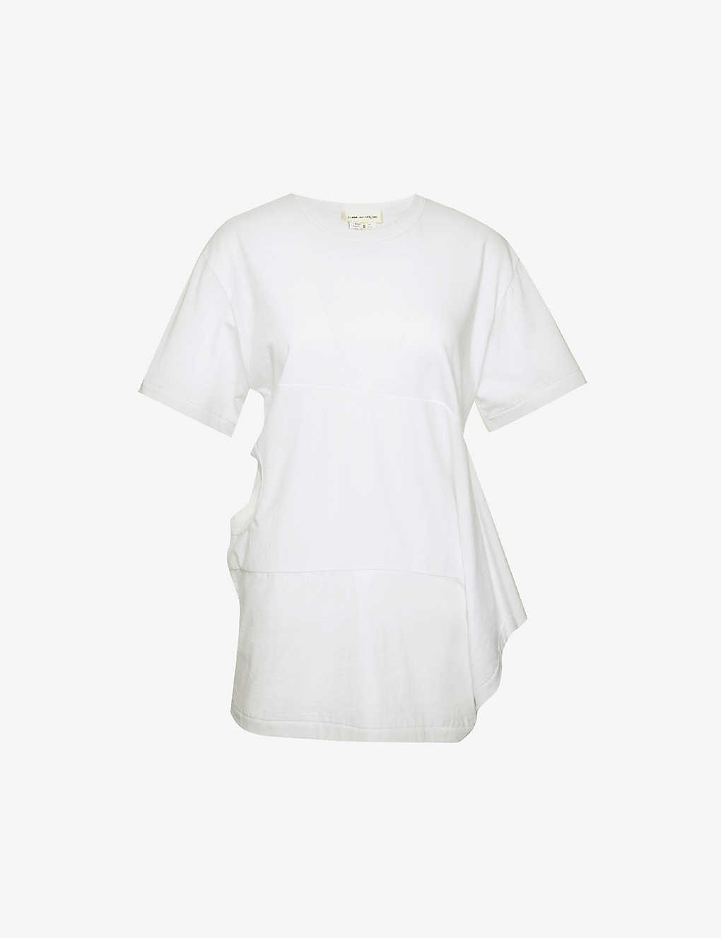 PRODUCT DETAILS - Comme des Garçons cotton T-shirt - 100% cotton - Slips on - Relaxed fit, round neckline, short sleeves, cut-out panels at sides, marl pattern - Hand wash - Made in Japan - True to size - Size small: length 29.5 in / 75 cm - Model is 5 ft 10 in/1.78 m and wears a size small - Lightweight, slight stretch