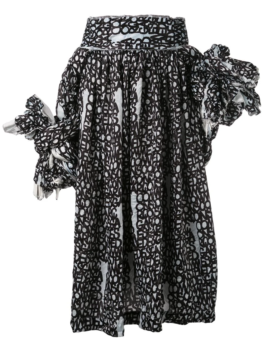 D pattern knotted jumper-skirt Comme Des Garcons challenges perceptions in both mens and womenswear with a radical and often surprising use of unusual references, exaggerated proportion, and individual execution. This black and white D pattern knotted jumper-skirt from Comme Des Garcons features a high waist and long twisted sleeves. Imported Composition Polyester 100% SIZE & FIT Model measurements Height 5 ft 10 in(1.77 m) Bust/Chest 31.88 in(81 cm) Hips 33.85 in(86 cm) Waist 24.01 in(61 cm)