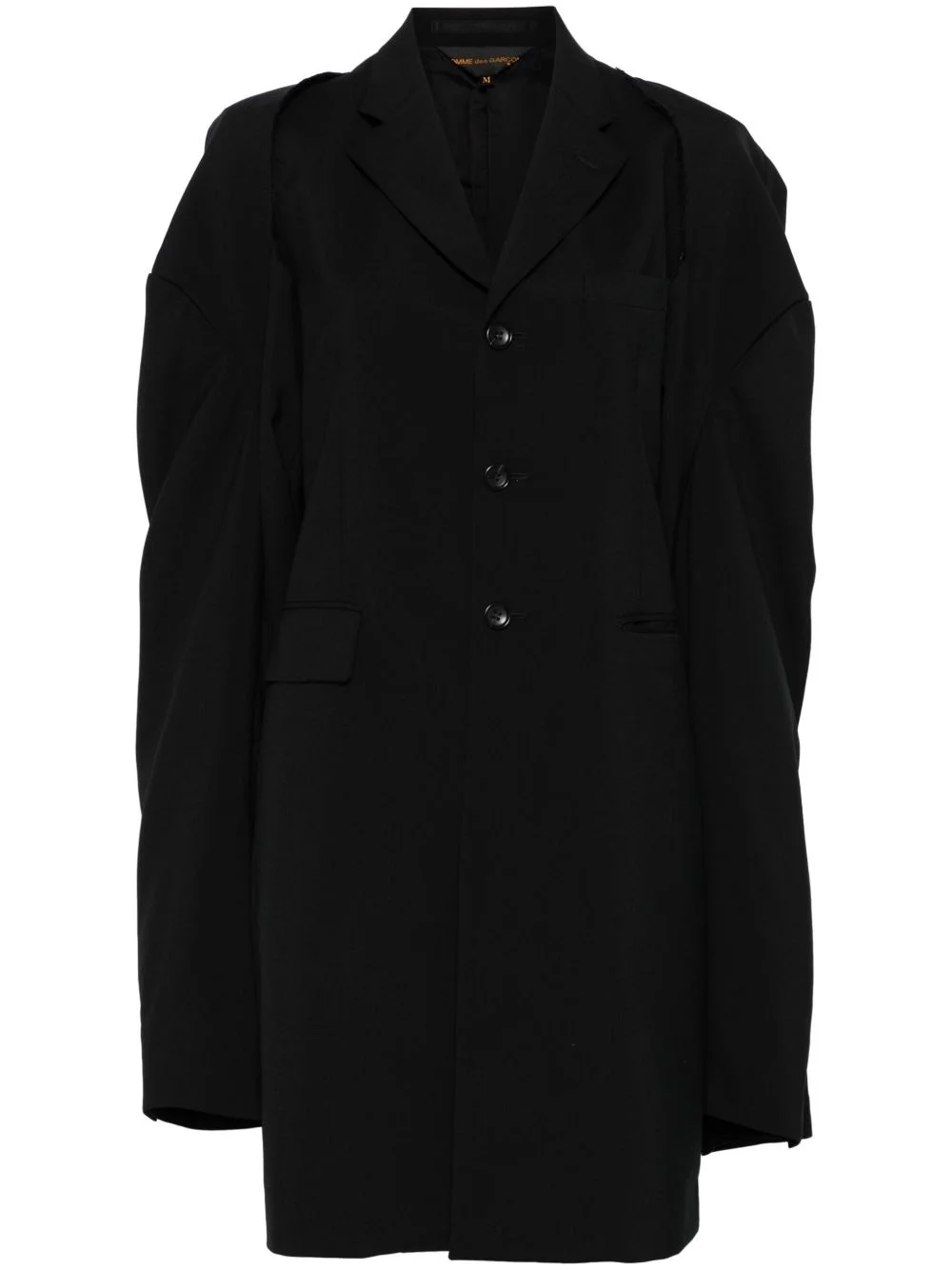 detachable-sleeves coat Highlights - Black - Front button fastening - Shoulder pads - Two front jetted pockets - Central rear vent Imported Composition Outer: Wool 100% Lining: Cupro 100% SIZE & FIT Model measurements Height 5 ft 9 in(1.76 m) Bust/Chest 31.1 in(79 cm) Hips 36.61 in(93 cm) Waist 24.8 in(63 cm) FittingInformation Designed to be unstructured, offering a loose fit throughout The detachable panel offers the preference for a different fit Made from a midweight non-stretch fabric