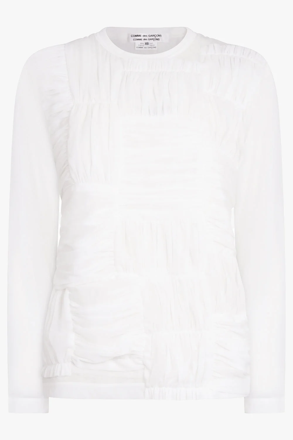 DRAPE RUCHED PANEL L/S TOP | WHITE