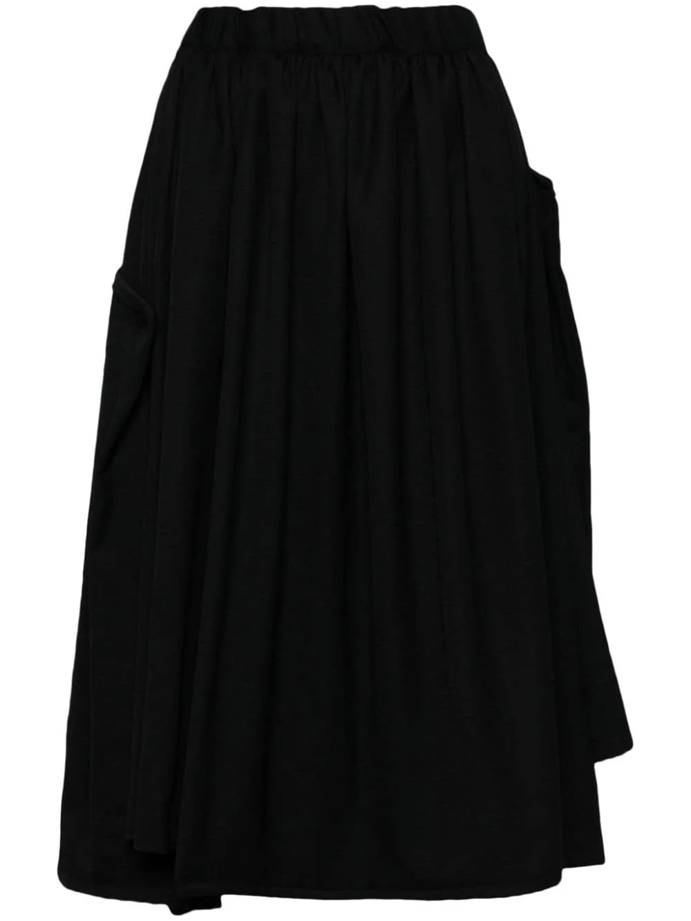 asymmetric design wool skirt Highlights - Black - Wool - Asymmetric design - Fully pleated - Elasticated waistband - Mid-length Imported Composition Wool 100%