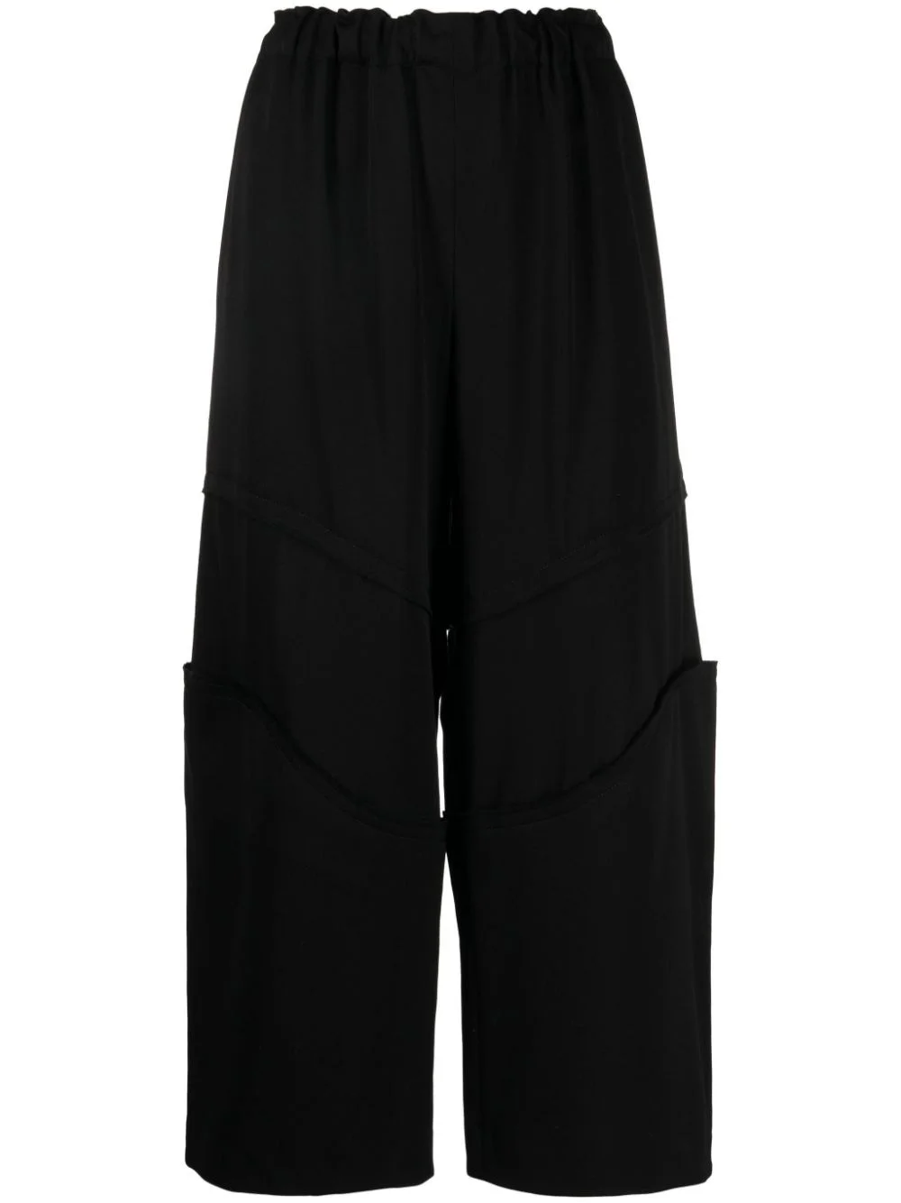 elasticated-waist cropped wool trousers Highlights - Black - Wool - Panelled design - Elasticated hem - Two side slit pockets - Wide leg - Cropped - Straight hem Imported Composition Wool 100% SIZE & FIT Model measurements Height 5 ft 9 in(1.76 m) Bust/Chest 31.1 in(79 cm) Hips 35.03 in(89 cm) Waist 24.4 in(62 cm) FittingInformation Designed with a dropped crotch, these trousers allow for a close fit at the waist with a loose and relaxed fit through the leg Adjust this piece’s waistband to your preference using the drawstring Made from a midweight non-stretch fabric This piece fits true to size – take your usual size Washing instructions Dry Clean Only