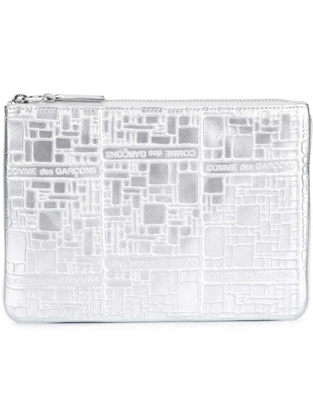 embossed logo purse Silver-tone calf leather embossed logo purse from Comme Des Garcons Wallet featuring an embossed logo, a top zip fastening and an embossed internal logo stamp. This item is unisex. Imported Composition Outer: Calf Leather 100% SIZE & FIT Measurement WIDTH 8.46 in(21.5 cm) LENGTH 6.29 in(16 cm) DEPTH 0.59 in(1.5 cm) Washing instructions Specialist Cleaning