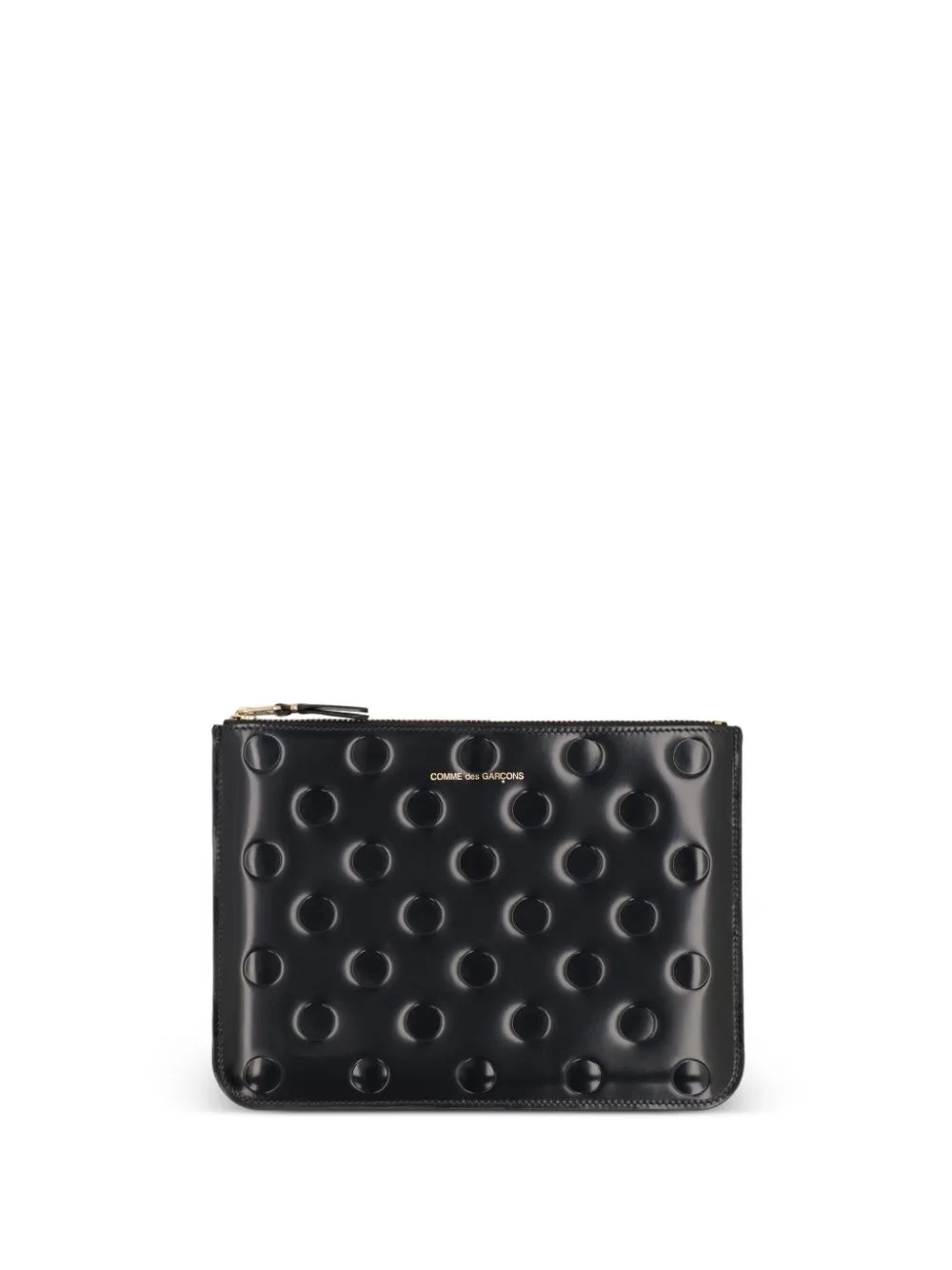 embossed polka dots wallet Highlights - Black - Leather - Polka dot print - Gold-tone logo lettering - Top zip fastening - Main compartment Imported Composition Outer: Calf Leather 100% SIZE & FIT Measurement WIDTH 6.29 in(16 cm) LENGTH 8.66 in(22 cm)