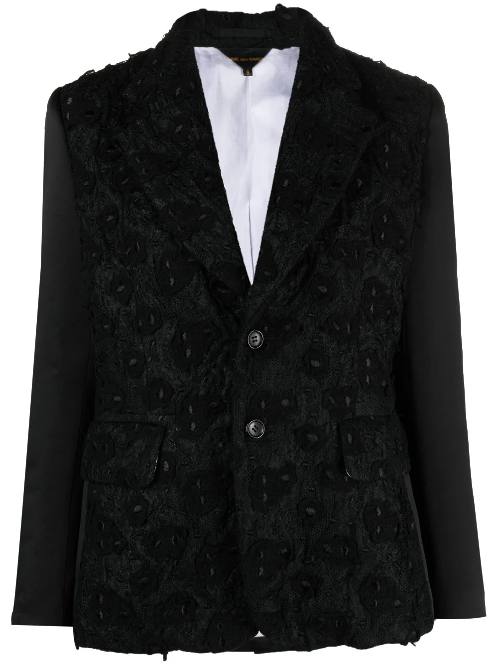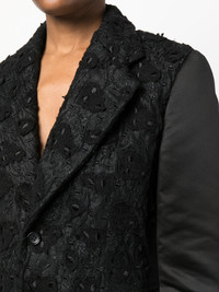 embroidered single-breasted blazer Highlights - Black - Wool blend - All-over floral embroidery - Notched collar - Front button fastening - Long sleeves - Straight hem Imported Composition Outer: Polyester 100%, Wool 90%, Nylon 10% Lining: Cotton 100% SIZE & FIT Model measurements Height 5 ft 11 in(1.8 m) Bust/Chest 31.49 in(80 cm) Hips 36.61 in(93 cm) Waist 24.4 in(62 cm) FittingInformation Designed for a slim fit that sits just away from the body offering a close yet comfortable fit The vented hem offers movement at the rear Made from a midweight non-stretch fabric This piece fits true to size – take your usual size Washing instructions Dry Clean Only