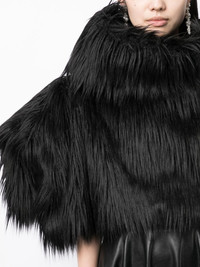 faux-fur cropped cape Highlights - Black - Cotton - Faux-fur design - Cape design - Shoulder pads - High neck - Cropped Imported Composition Polyester 100% SIZE & FIT Model measurements Height 5 ft 10 in(1.77 m) Bust/Chest 28.74 in(73 cm) Hips 35.82 in(91 cm) Waist 24.4 in(62 cm) FittingInformation Designed to be unstructured, offering a loose fit throughout Cropped in length Made from a heavyweight non-stretch fabric This piece fits true to size – take your usual size Washing instructions Dry Clean Only