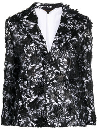 floral-lace single-breasted blazer Highlights - Black/white - Cotton - Floral-lace detailing - Notched lapels - Front button fastening - Long sleeves - Cuff sleeves - Full lining - American rear vent Imported Composition Lining: Cotton 100% Outer: Polyester 96%, Polyurethane 4% SIZE & FIT Model measurements Height 5 ft 11 in(1.8 m) Bust/Chest 31.49 in(80 cm) Hips 36.22 in(92 cm) Waist 25.59 in(65 cm) FittingInformation Designed for a slim fit that sits just away from the body offering a close yet comfortable fit Made from a midweight non-stretch fabric This piece fits true to size – take your usual size Washing instructions Dry Clean Only