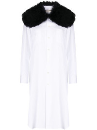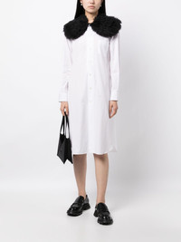 fur-collar midi shirtdress Highlights - White/black - Cotton - Faux-fur collar - Front button fastening - Long sleeves - Buttoned cuffs - Chest patch pocket - Curved hem - Knee-length Imported Composition Acrylic 100% Outer: Cotton 100% Base: Polyester 100% Lining: Cupro 100% SIZE & FIT Model measurements Height 5 ft 10 in(1.77 m) Bust/Chest 28.74 in(73 cm) Hips 35.82 in(91 cm) Waist 24.4 in(62 cm) FittingInformation Designed for a slim fit that sits just away from the body offering a close yet comfortable fit Made from a midweight non-stretch fabric This piece fits true to size – take your usual size Washing instructions Dry Clean Only