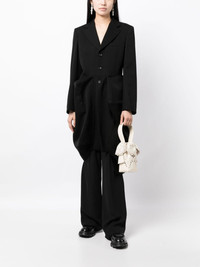 gathered asymmetric single-breasted coat Highlights - Black - Wool - Gathered detailing - Notched lapels - Front button fastening - Long sleeves - Buttoned cuffs - Chest welt pocket - Asymmetric hem - Above-knee length Imported Composition Outer: Acrylic 55%, Polyester 45% Base: Acrylic 100% Lining: Cupro 100% SIZE & FIT Model measurements Height 5 ft 11 in(1.8 m) Bust/Chest 35.03 in(89 cm) Hips 35.03 in(89 cm) Waist 23.62 in(60 cm) FittingInformation This midi-length skirt is intended to be worn just below the waist The elasticated waist allows for a comfortable fit Made from a heavyweight non-stretch fabric This piece fits true to size – take your usual size