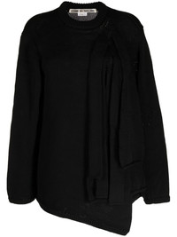 gathered-detail knitted jumper Highlights - Black - Knitted construction - Gathered detailing - Round neck - Long sleeves - Asymmetric hem Imported Composition Polyester 100% Washing instructions Hand Wash