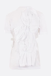 ruched T-shirt Highlights - White - Cotton blend - Ruched detailing - Gathered detailing - Crew neck - Short sleeves - Straight hem Imported Composition Cotton 50%, Polyester 50% SIZE & FIT Model measurements Height 5 ft 10 in(1.79 m) Bust/Chest 33.07 in(84 cm) Hips 35.82 in(91 cm) Waist 24.01 in(61 cm) Measurement SLEEVE LENGTH 7.08 in(18 cm) LENGTH 23.62 in(60 cm) BUST 33.07 in(84 cm) Shoulder Width 14.96 in(38 cm) FittingInformation Designed for a slim fit that sits just away from the body offering a close yet comfortable fit Made from a midweight non-stretch fabric, this piece offers minimal elasticity when worn This piece fits true to size – take your usual size Washing instructions Machine Wash