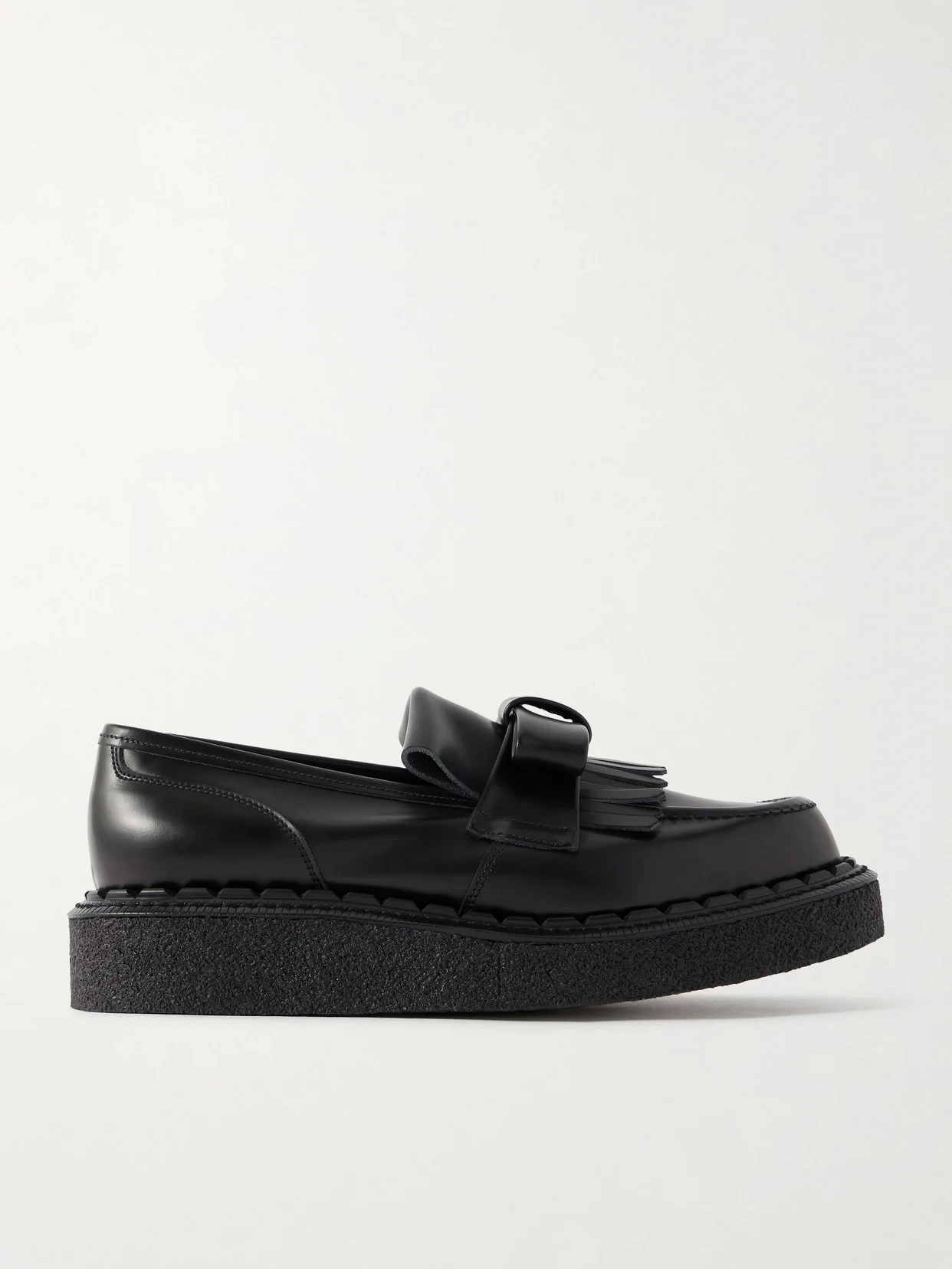 The 'Ribbon' loafers are part of Comme des Garcons GIRL's collaboration with George Cox. Made in the UK from smooth leather, they rest on platform rubber soles and are finished with a bow and fringe detailing across the upper. Style them with a babydoll dress and frilly socks.