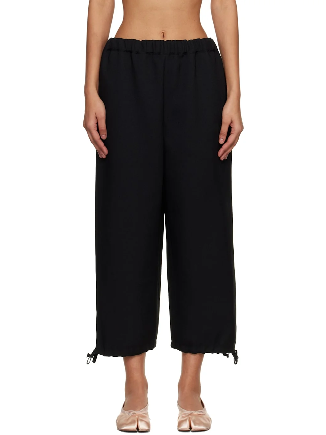 Gabardine trousers. · Concealed drawstring at elasticized waistband · Two-pocket styling · Drawstring at vented cuffs Supplier color: Black 100% polyester. Made in Japan 261670F087000