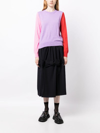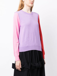 colour-block crew neck jumper Woven in Japan into a fine knit construction, this crew neck jumper from COMME DES GARCONS GIRL is defined by its statement colour-block design – seen here in a lilac, pink and red iteration. Highlights - Lilac purple/bubblegum pink/bright red - Colour-block design - Knitted construction - Crew neck - Ribbed cuffs and hem Imported Composition Acrylic 70%, Wool 30% SIZE & FIT Model measurements Height 5 ft 9 in(1.76 m) Bust/Chest 33.46 in(85 cm) Hips 37 in(94 cm) Waist 23.62 in(60 cm) FittingInformation Designed for a slim fit that sits just away from the body offering a close yet comfortable fit The ribbed hem offers a close, comfortable fit Made with a lightweight knit, this piece offers some stretch This piece fits true to size – take your usual size Washing instructions Dry Clean Only