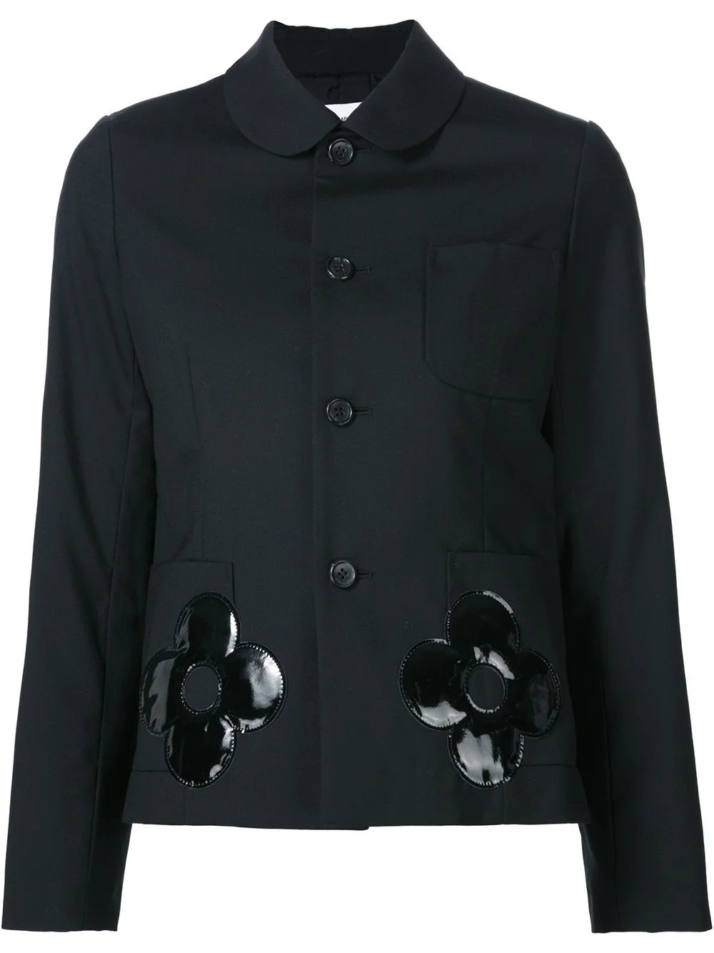 floral motif blazer Black wool floral motif blazer from Comme Des Garcons Girl. Imported Composition Lining: Cupro 100% Outer: Wool 100% Washing instructions Dry Clean Only