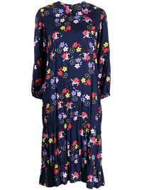 floral-print Peter Pan-collar midi dress Highlights - Navy blue/multicolour - All-over floral print - Peter pan collar - Concealed rear fastening - Three-quarter length sleeves - Elasticated cuffs - Tiered skirt - Ruffle hem - Below-knee length Imported Composition Body: Rayon 100% SIZE & FIT Model measurements Height 5 ft 10 in(1.77 m) Bust/Chest 31.49 in(80 cm) Hips 35.43 in(90 cm) Waist 25.19 in(64 cm) FittingInformation Designed to be unstructured, offering a loose fit throughout Made from a midweight non-stretch fabric This piece fits true to size – take your usual size Washing instructions Dry Clean Only