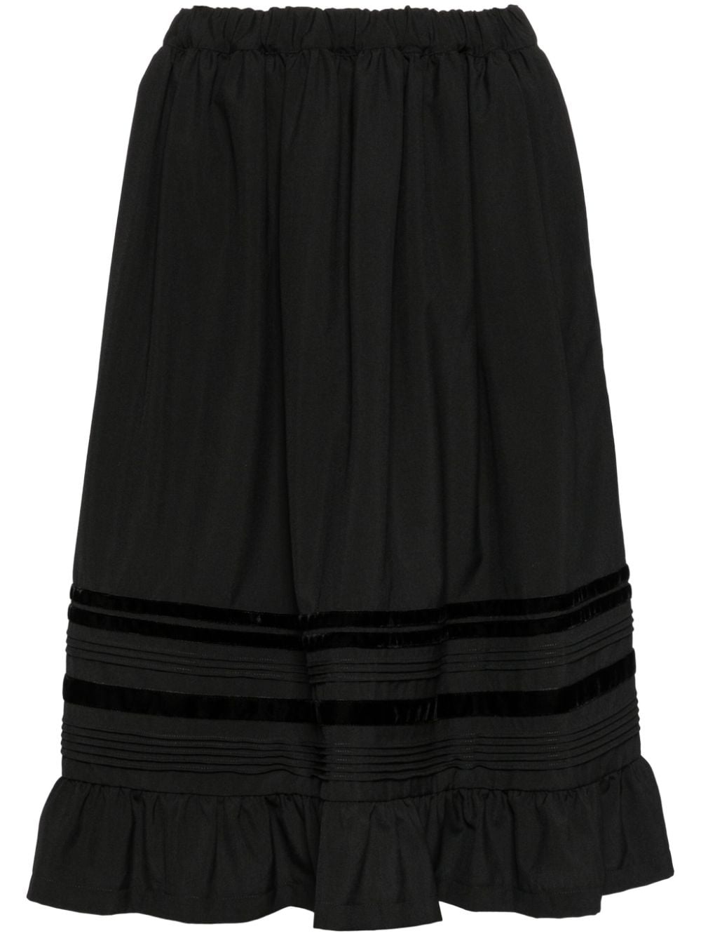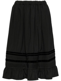 gathered A-line skirt Highlights - Black - Wool - Elasticated waistband with internal drawstring - Slip pockets to the sides - Velvet trim - Pleat detailing - Gathered detailing - Ruffle hem Imported Composition Wool 100% SIZE & FIT Model measurements Height 5 ft 10 in(1.77 m) Bust/Chest 30.31 in(77 cm) Hips 33.85 in(86 cm) Waist 25.19 in(64 cm) FittingInformation This midi-length skirt is intended to be worn high on the waist The elasticated waist allows for a comfortable fit Made from a midweight non-stretch fabric