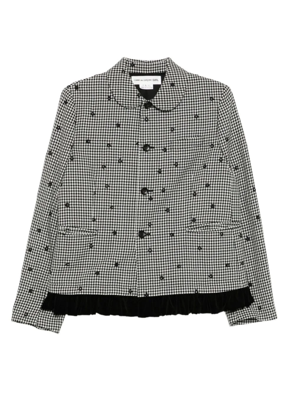 checked jacket Highlights - Black - Front button fastening - Chest welt pocket - Two side jetted pockets - Puffball hem Imported Composition Outer: Wool 100% Lining: Cupro 100%