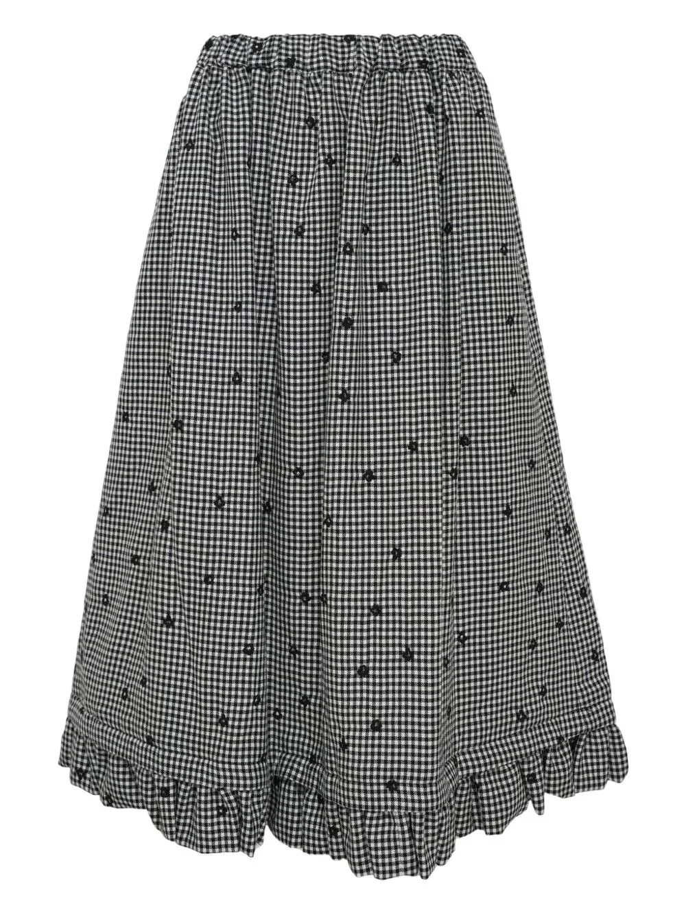 polka-dot ruffled midi skirt Highlights - Black - Polka dot pattern - Elasticated waistband - Ruffled hem Imported Composition Cotton 100% Washing instructions Read Manufacturer Guidelines