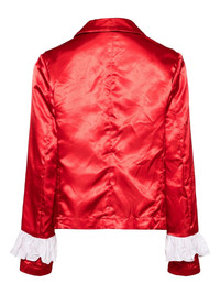 ruffled-applique satin jacket Highlights - Red/white - Satin finish - Ruffled detailing - Peter pan collar - Front button fastening - Long sleeves - Front flap pockets - Straight hem Imported Composition Polyester 100%