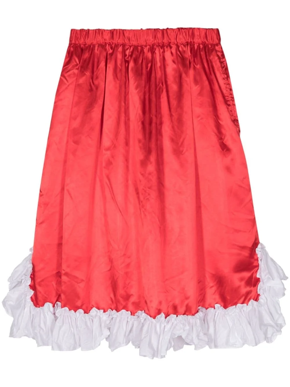 ruffled-hem satin skirt Highlights - Red - Satin finish - Elasticated waistband - Short side slits - Ruffle hem Imported Composition Trims: Cotton 100% Polyester 100%