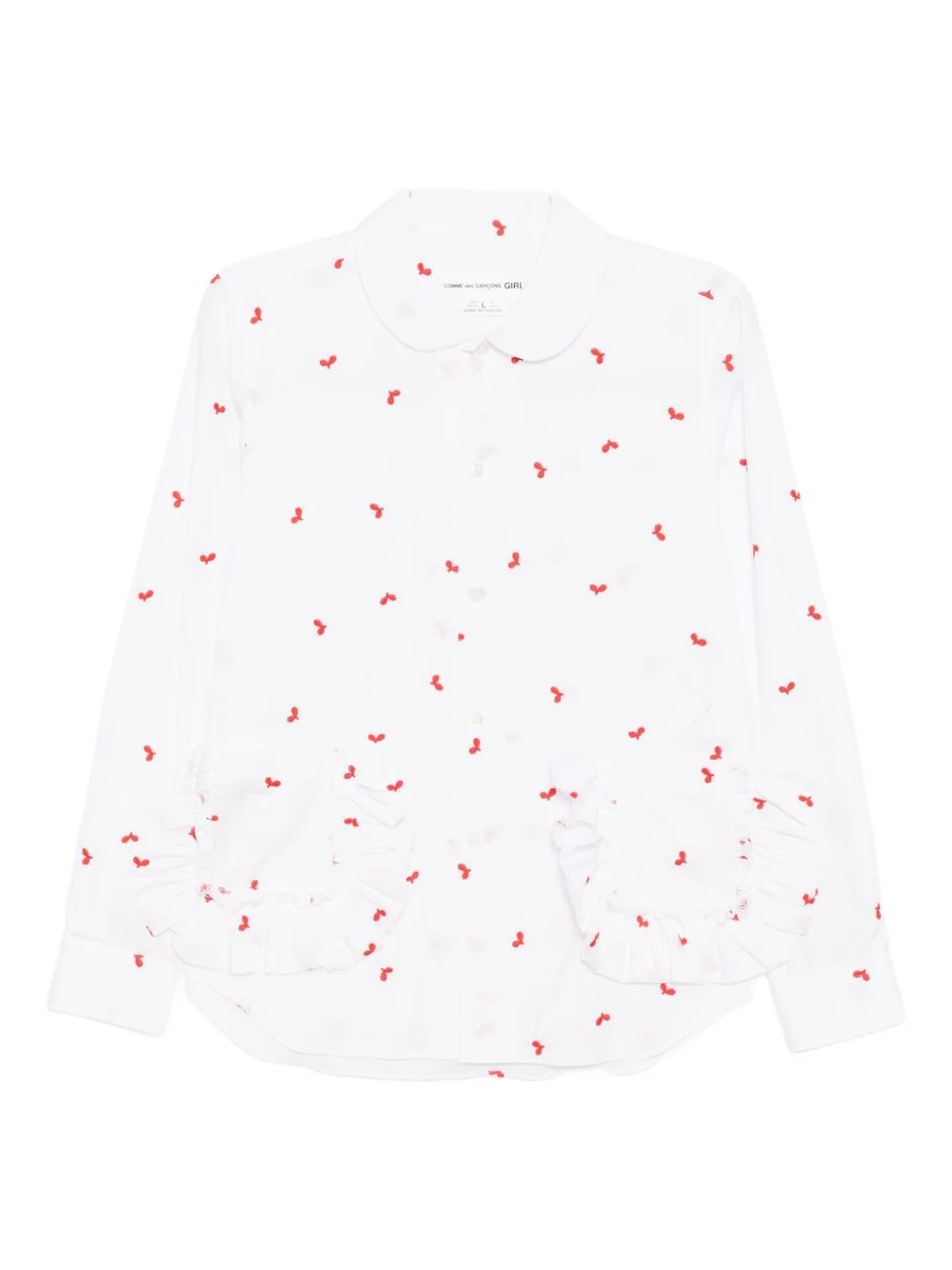 ruffled-pocket shirt Highlights - White - Front button fastening - Rounded collar - Long sleeves Imported Composition Outer: Cotton 100% Polyester 100% Washing instructions Hand Wash