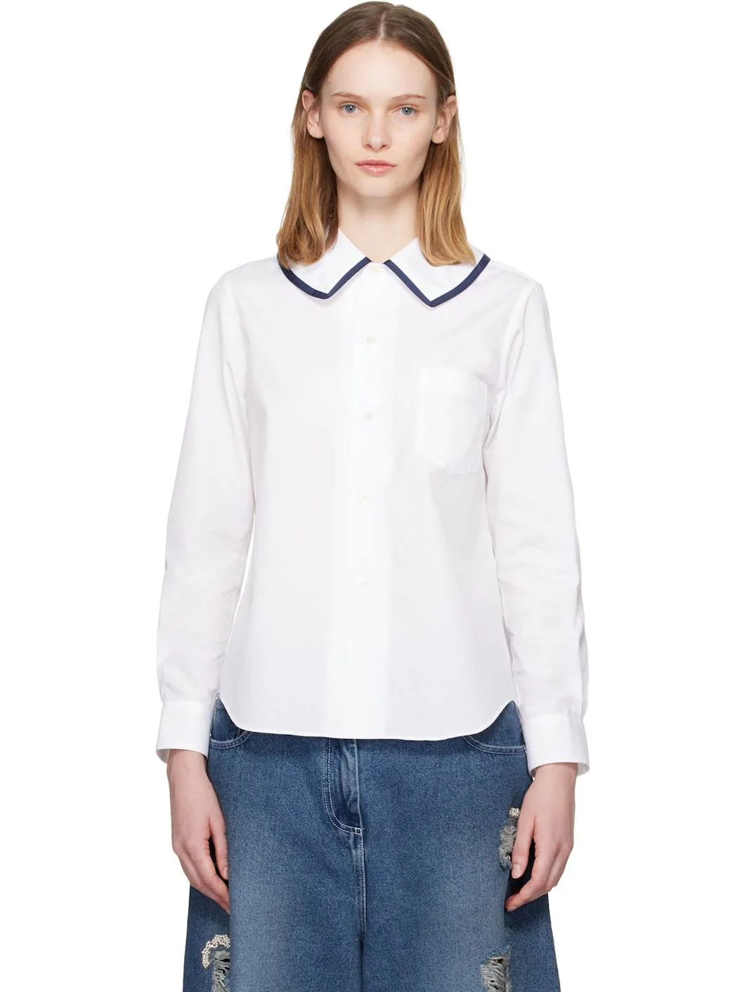 Cotton poplin shirt. · Grosgrain trim at spread collar · Button closure · Patch pocket at chest · Shirttail hem · Buttoned barrel cuffs · Box pleat at back yoke · Mother-of-pearl hardware Supplier color: White Body: 100% cotton. Trim: 100% polyester. Made in Japan 252670F109006
