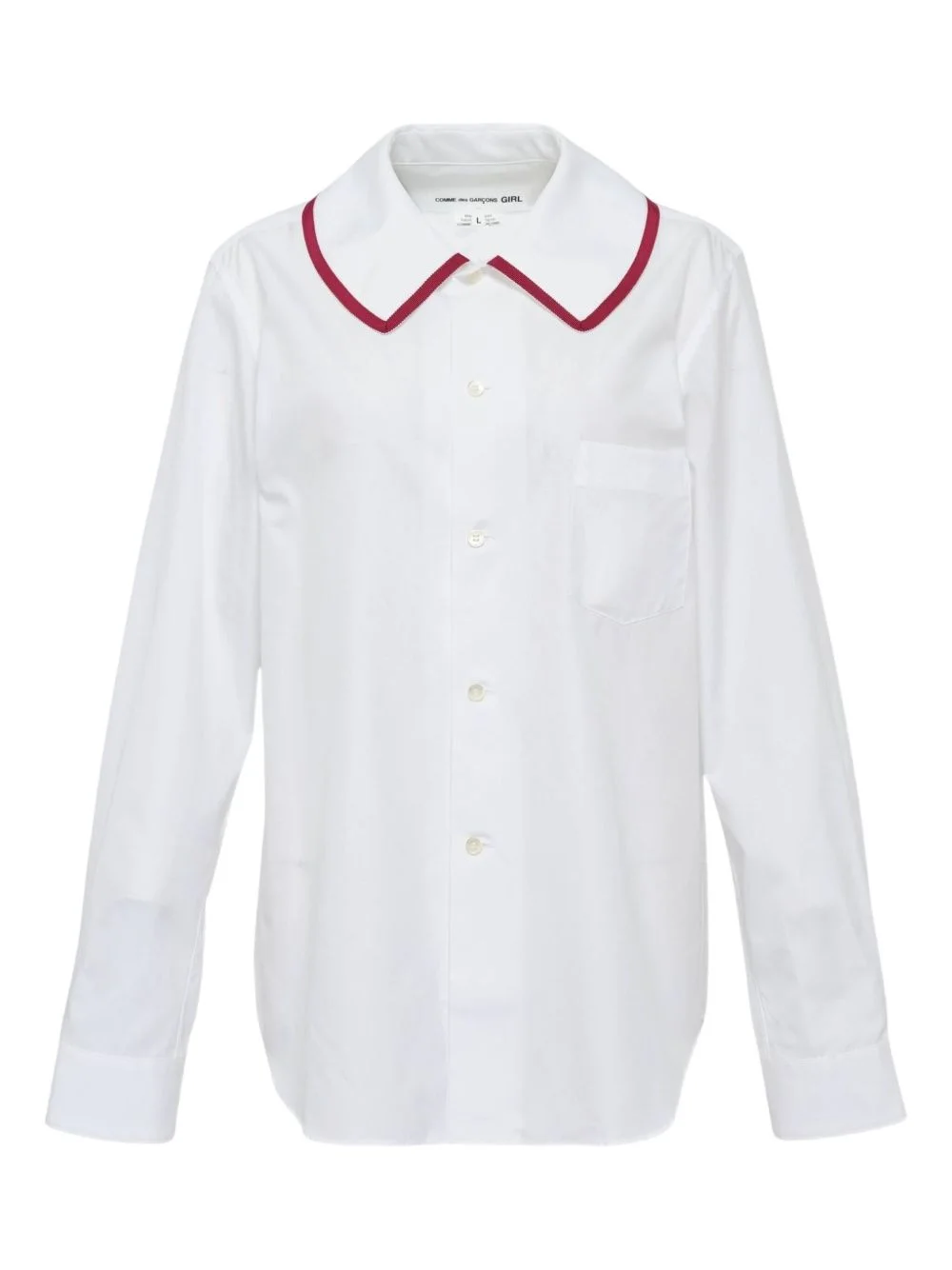 long-sleeve blouse Highlights - White and red - Chest patch pocket - Button fastening - Long sleeves - Buttoned cuffs - Square collar Imported Composition Fabric 100% Washing instructions Read Manufacturer Guidelines