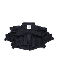 600076294NVY0OS / NP-V001/051/2 - Dramatic oversized collar - Elaborate ruffle detailing throughout - Cropped cape silhouette - Structured cotton construction - Front tie closure - Voluminous architectural shape COMME des GARCONS GIRL Teiban Cape delivers avant-garde outerwear with architectural construction and dramatic silhouette. Crafted from structured navy cotton with elaborate ruffle detailing and oversized collar design, showcasing the brand's signature deconstructed aesthetic. The voluminous ruffled construction and cropped proportions create a bold statement piece that redefines contemporary layering.