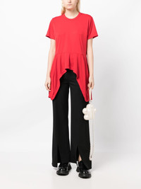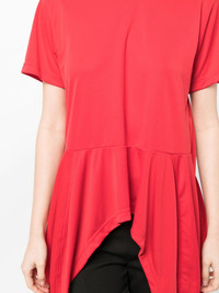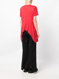 high-low hem panelled T-shirt Highlights - Scarlet - Panelled design - Round neck - Short sleeves - High-low hem Imported Composition Polyester 100% SIZE & FIT Model measurements Height 5 ft 9 in(1.76 m) Bust/Chest 31.1 in(79 cm) Hips 35.03 in(89 cm) Waist 24.4 in(62 cm) FittingInformation Designed to be unstructured, offering a loose fit throughout Made from a midweight non-stretch fabric, this piece offers minimal elasticity when worn This piece fits true to size – take your usual size Washing instructions Hand Wash