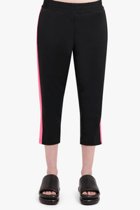 The Comme Des Garcon Jogger in Black and Pink are crafted polyester and are a cropped fit. This style features a neon stripe down the side, pockets on either side and a elasticated waistband. Fabrication: 100% Polyester Size and Fit Sophie: Model is 189cm/6’02” and is wearing a size S Model Measurements: Bust: 76cm, Waist: 61cm, Hips 87.5cm Fits true to size Measurements Size XS: Waist 66cm, Hip 92cm, Length 97cm Size S: Waist 70cm, Hip 96cm, Length 97cm Size M: Waist 74cm, Hip 100cm, Length 97cm Size L: Waist 76cm, Hip 108cm, Length 97cm