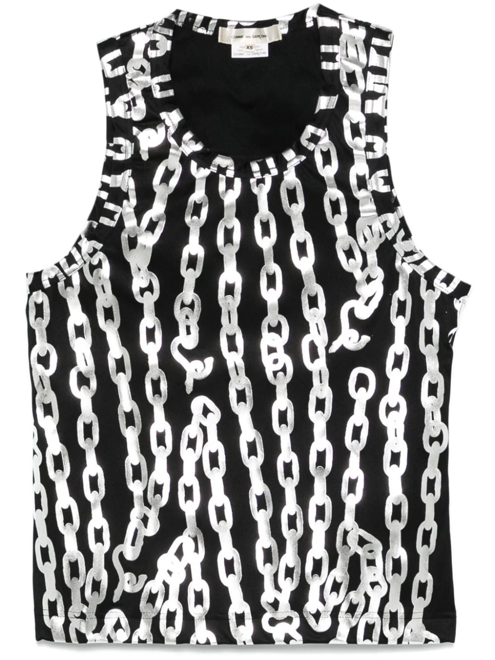 chain-link print tank top Highlights - Black/silver-tone - Jersey texture - Metallic chain-link print - Scoop neck - Sleeveless - Straight hem Imported Composition Polyester 100%
