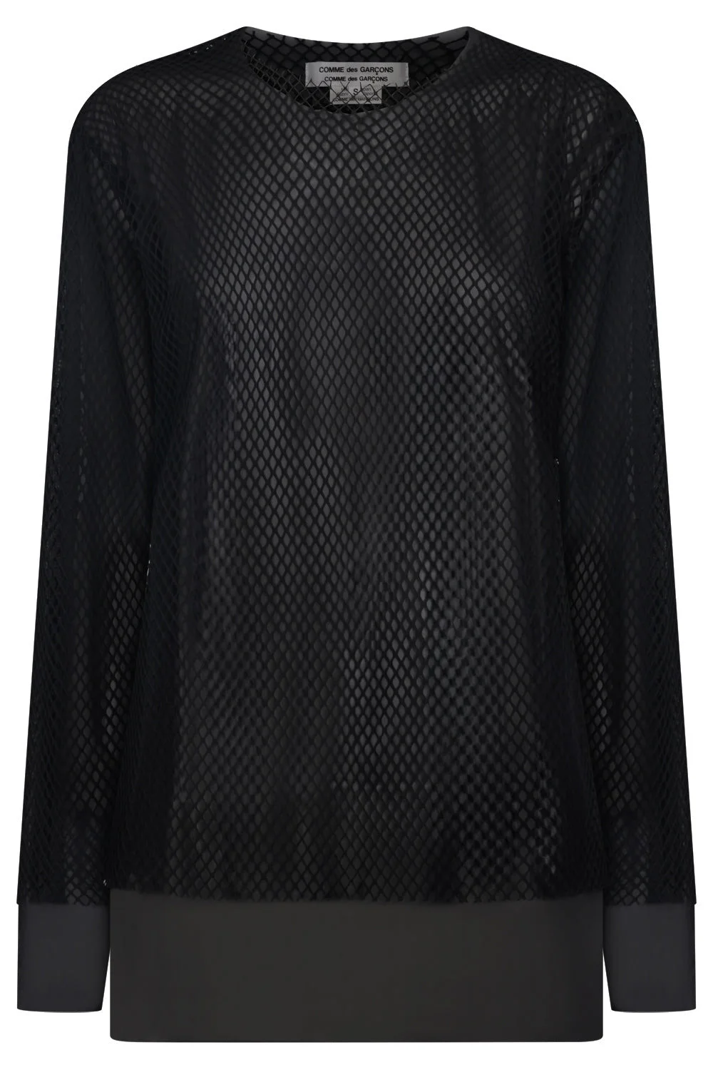 LAYERED L/S SHEER X NETTED MESH TOP | BLACK