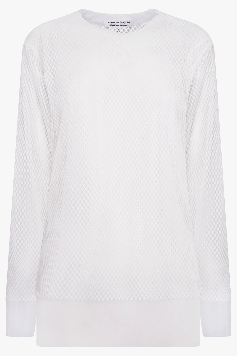 LAYERED L/S SHEER X NETTED MESH TOP | OFF WHITE