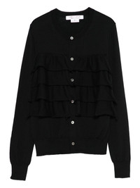 layered-ruffle cardigan Highlights - Black - Layered ruffles - Button front - Long sleeves - Round neck - Ribbed hem Imported Composition Wool 100% Washing instructions Read Manufacturer Guidelines