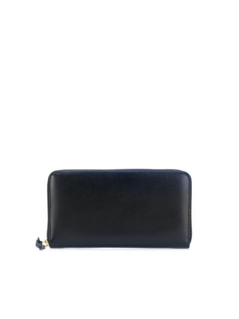 zip-around leather wallet Highlights - Green leather zip around wallet from comme des garcons featuring a zipped coin pouch, multiple interior card slots and gold-tone hardware. Made in Italy Composition Outer: Calf Leather 100% SIZE & FIT Measurement WIDTH 4.72 in(12 cm) LENGTH 7.48 in(19 cm) DEPTH 0.78 in(2 cm)