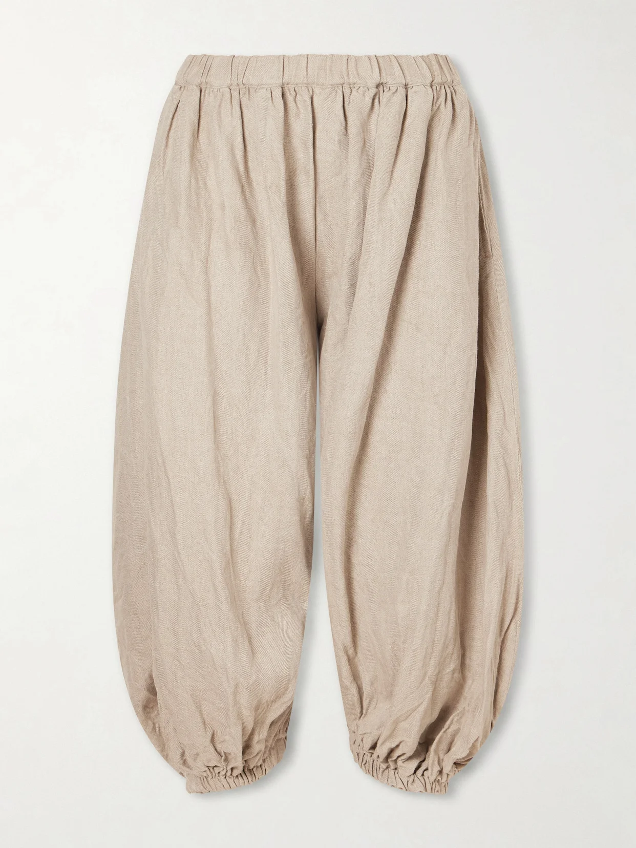Comme des Garcons' harem pants nod to traditional Ottoman silhouettes. Crafted from breathable linen, they feature an elasticated waist and gathered cuffs. Style yours with ballet flats.