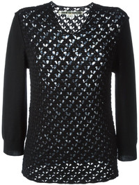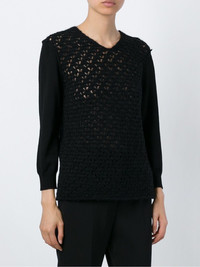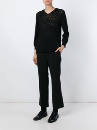 loose knit sweater Black wool-mohair blend loose knit sweater from Comme Des Garcons featuring a round neck, long sleeves, fitted cuffs and a straight hem. Imported Composition Wool 55%, Mohair 35%, Nylon 10% SIZE & FIT Model measurements Height 5 ft 10 in(1.77 m) Bust/Chest 32.67 in(83 cm) Hips 34.25 in(87 cm) Waist 22.44 in(57 cm) Washing instructions Dry Clean Only