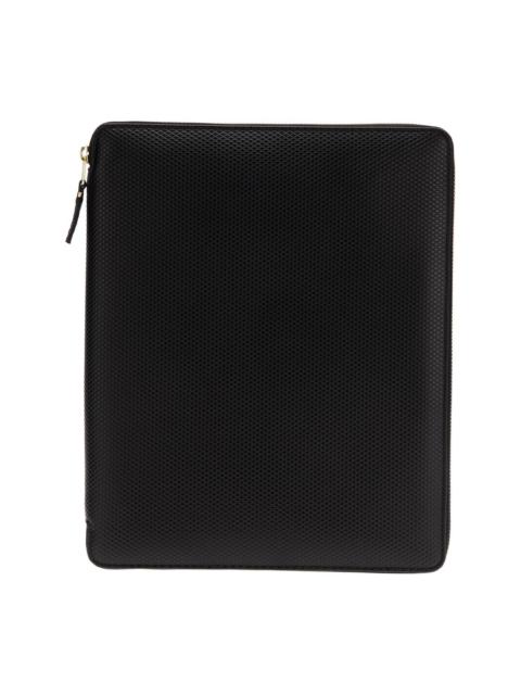 Luxury' iPad case Black textured leather 'Luxury' iPad case from Comme des Garcons featuring a gold-tone zip around fastening, large slit compartments and multiple internal card slots. Imported Composition Calf Leather 100% SIZE & FIT Measurement WIDTH 8.85 in(22.5 cm) HEIGHT 11.02 in(28 cm)