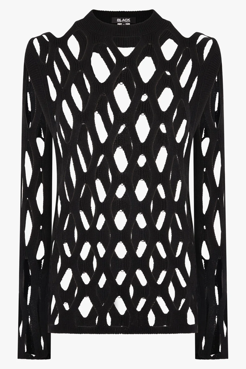 - Long sleeve top - Large open knit - Thick knit collar Fabrication: Acrylic Mesh - 100% Acrylic. Size and Fit Sophie: Model is 189cm/6’02” and is wearing a size S Model Measurements: Bust: 76cm, Waist: 61cm, Hips 87.5cm Fits true to size Measurements Size S: Bust 100cm, Waist 100cm, Hips 100cm, Length 72cm Size M: Bust 104cm, Waist 104cm, Hips 104cm, Length 72cm