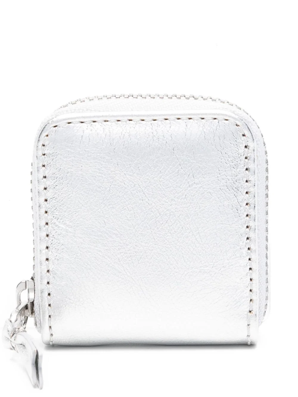 metallic wallet Highlights - Silver-tone - All-around zip fastening - Debossed internal logo Imported Composition Outer: Calf Leather 100% SIZE & FIT Measurement DEPTH 0.39 in(1 cm) HEIGHT 2.36 in(6 cm) WIDTH 2.36 in(6 cm)
