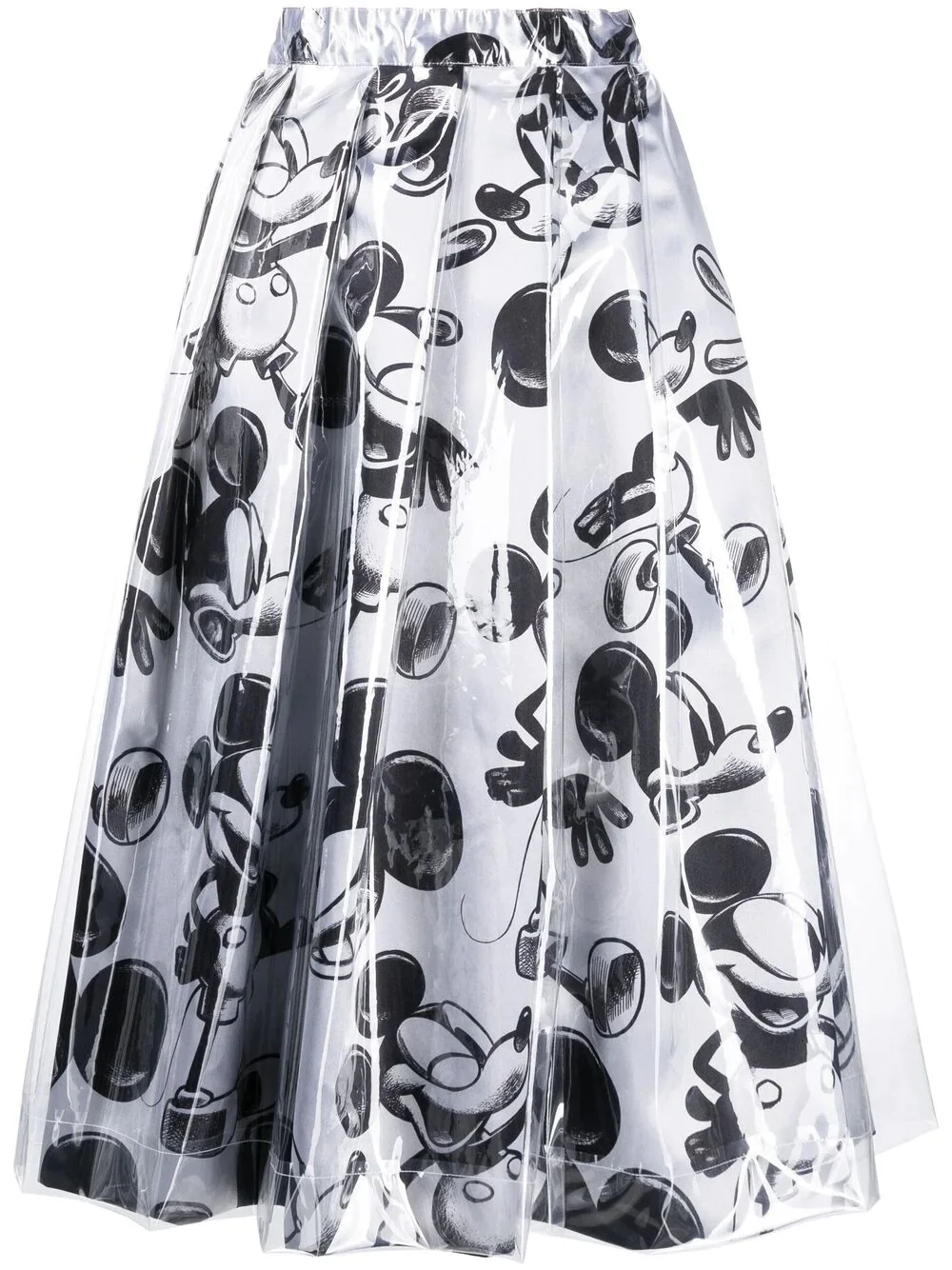 Mickey Mouse print skirt silver/black cartoon print metallic finish pleat detailing high waist flared straight hem Imported Composition Lining: Polyester 100% Outer: Polyurethane Resin 100% SIZE & FIT Model measurements Height 5 ft 10 in(1.77 m) Bust/Chest 35.03 in(89 cm) Hips 35.03 in(89 cm) Waist 23.62 in(60 cm) FittingInformation This piece fits true to size. We recommend you get your regular size Designed for a loose fit with a close fit at the waist Made with a heavyweight non-stretch fabric Washing instructions Specialist Cleaning