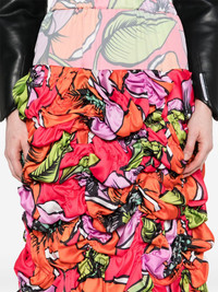 floral-print ruched midi skirt Highlights - Coral red/multicolour - Satin finish - Floral print - Elasticated waistband - Ruched bodice - Two side slit pockets - Rear slit - Mid-length Imported Composition Lining: Polyester 100% Outer: Polyester 100% SIZE & FIT Model measurements Height 5 ft 9 in(1.75 m) Bust/Chest 34.64 in(88 cm) Hips 36.61 in(93 cm) Waist 26.37 in(67 cm) FittingInformation This midi-length skirt is intended to be worn high on the waist The vented hem offers movement at the rear Made from a midweight non-stretch fabric This piece fits true to size – take your usual size