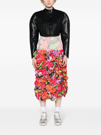 floral-print ruched midi skirt