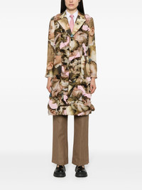 renaissance-print ruched midi coat Highlights - Green/multicolour - Textured finish - Notched collar - Shoulder pads - Long sleeves - Buttoned cuffs - Ruched detailing - Two side patch pockets - Central rear vent - Mid-length - Straight hem - Front button fastening Imported Composition Outer: Nylon 100%, Polyester 100% Lining: Cupro 100% SIZE & FIT Model measurements Height 5 ft 11 in(1.8 m) Bust/Chest 33.07 in(84 cm) Hips 37.4 in(95 cm) Waist 25.19 in(64 cm) FittingInformation Designed for a slim fit that sits just away from the body offering a close yet comfortable fit The vented hem offers movement at the rear Made from a midweight non-stretch fabric This piece fits true to size – take your usual size