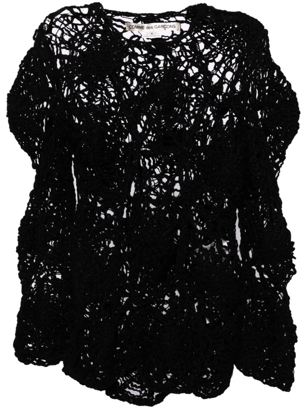 open-knitted jumper Highlights - Black - Wool - Open knit - Crew neck - Long sleeves - Scallop hem Imported Composition Wool 100%