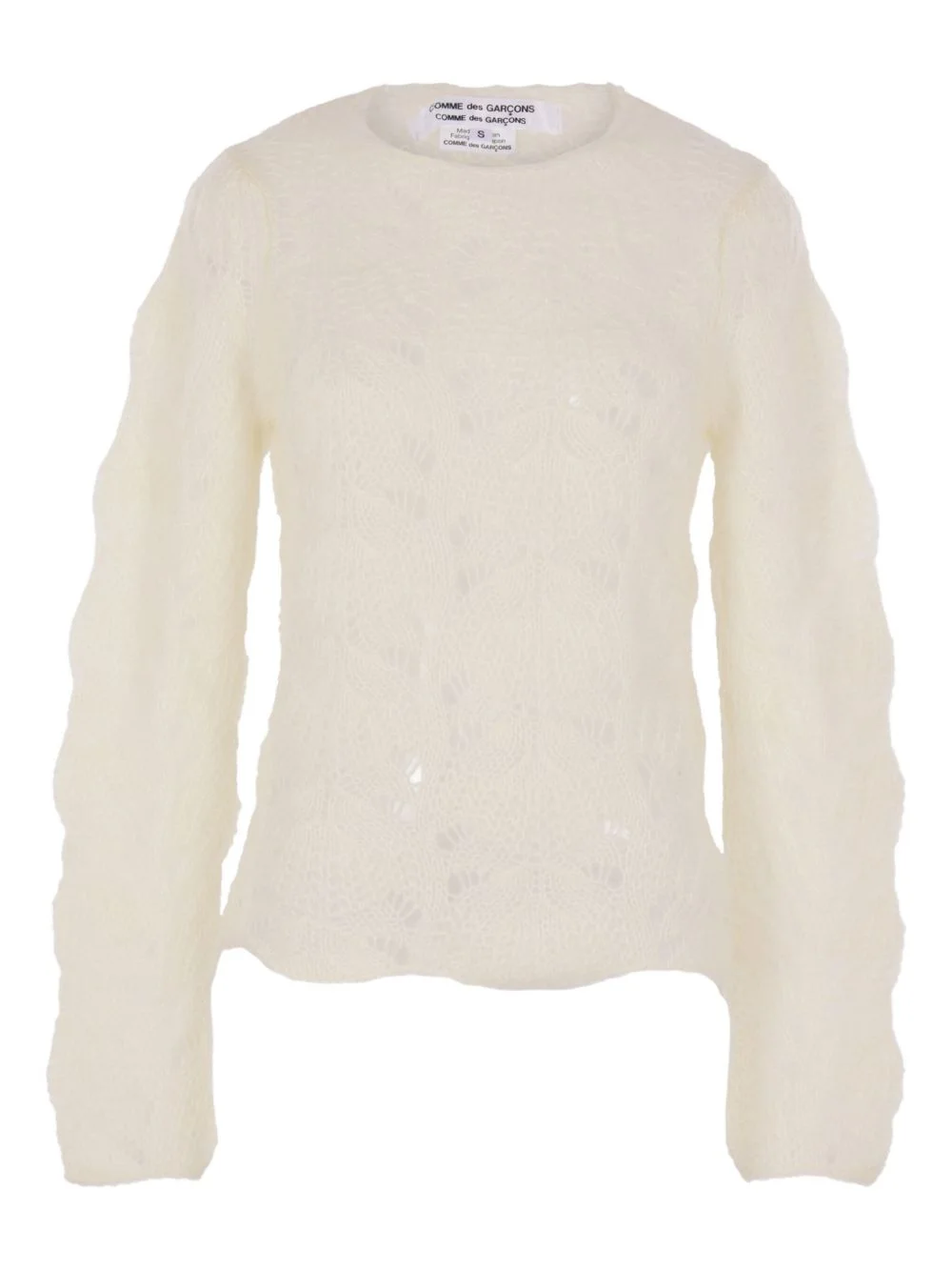 open-work long-sleeve sweater Highlights - Beige - Openwork pattern - Crew neck - Long sleeves Imported Composition Mohair 55%, Nylon 30%, Wool 15% Washing instructions Read Manufacturer Guidelines